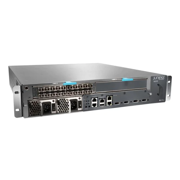 MX5BASE-T is a HKShanhai Group Limited MX5 chassis with timing support—includes dual power supplies, MIC-3D-20GE-SFP, S-MX80-ADV-R, S-MX80-Q, and S-ACCTJFLOW-IN-5G licenses. Power supply cable needs to be ordered separately. The compact MX150 Universal Routing Platform is a high-performance, feature-rich 20 Gbps edge router that is ideally suited for lower bandwidth service provider applications and distributed service architectures, and for enterprise WAN uses.