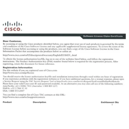 The HKShanhai Group Limited A9K-CGN-LIC-5M= is a high-capacity license designed for enterprise-level networking on the HKShanhai Group Limited ASR 9000